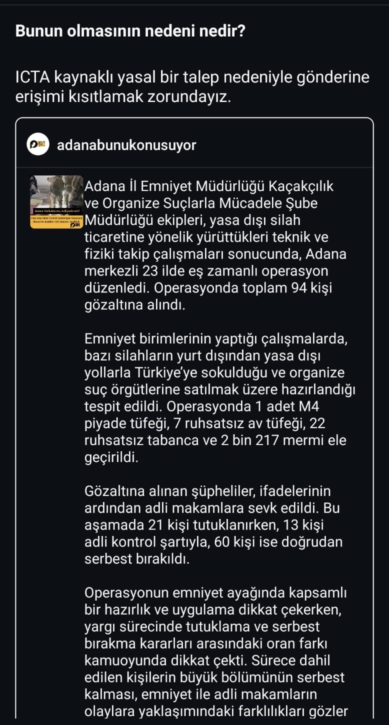 Besime Yardım, haber metni için emniyetin operasyonla ilgili servis ettiği bir fotoğrafı kullandı. Fotoğrafın üzerinde “Yasa Dışı Silah Ticareti Nedeniyle Gözaltına Alınan 94 Kişiden 73’ü Serbest Bırakıldı” yazıyor, “Sorun Kollukta mı, Adliyede mi?” diye soruyordu. Bu gönderi daha sonra silindi.